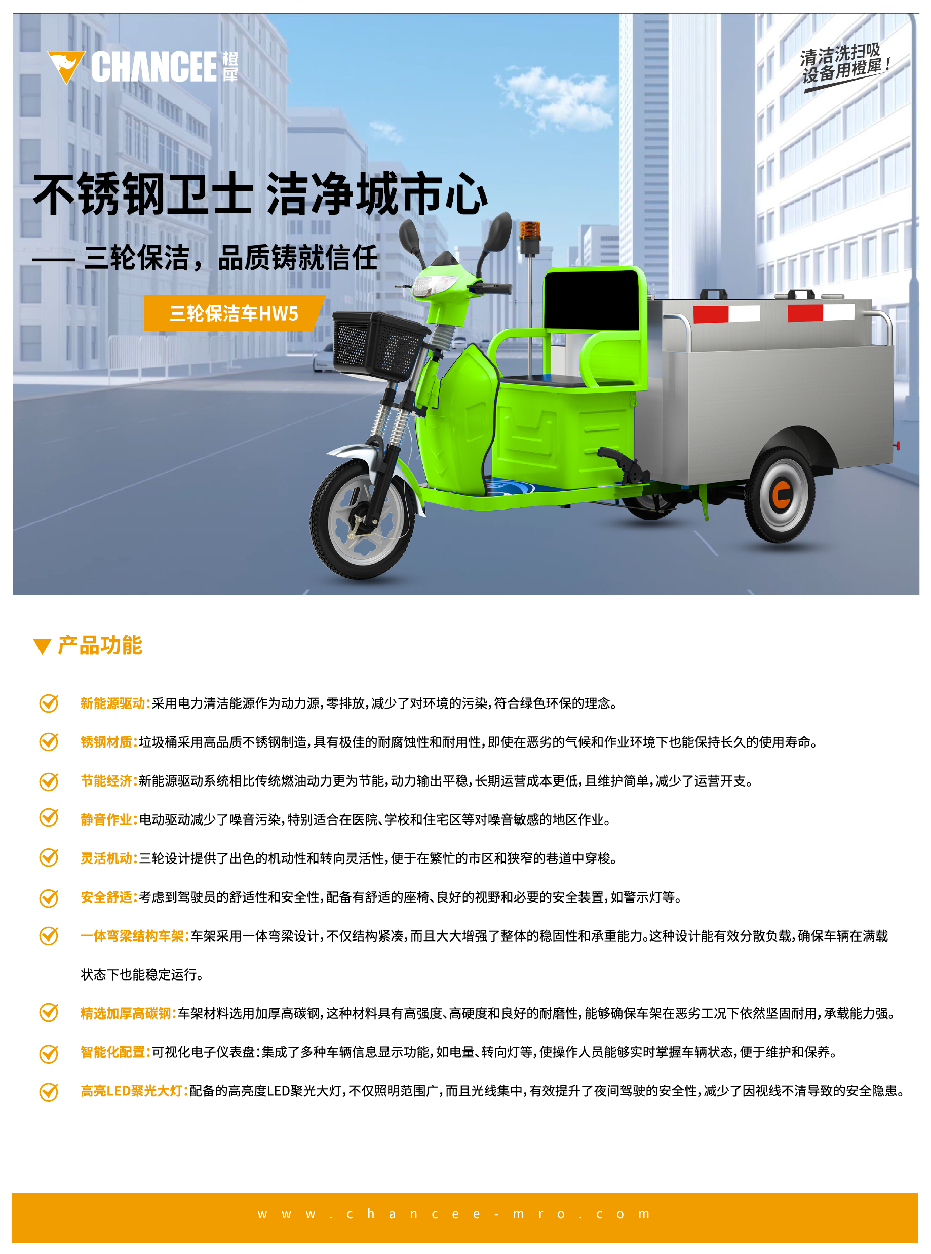 三轮保洁车HW3-不锈钢款